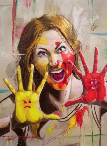 Lo hace mediante un lenguaje fresco y descarado. Con el que busca la expresividad gestual de los cómics y, a su vez, desatar el movimiento contenido por los protagonistas de sus historias. Resueltas en fondos de colores llamativos sobre los que vierte manchas complementarias, que dejan una dinámica y divertida percepción visual. De sus composiciones sorprenden extraordinariamente la calidad de su dibujo, así como las pinceladas sueltas y el contraste cromático a través de los que alcanza propiedades impresionistas.