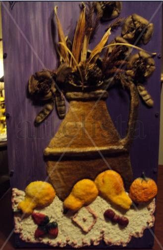 medida 70x40 papel mache , flores secas y acrilico sobre tablas