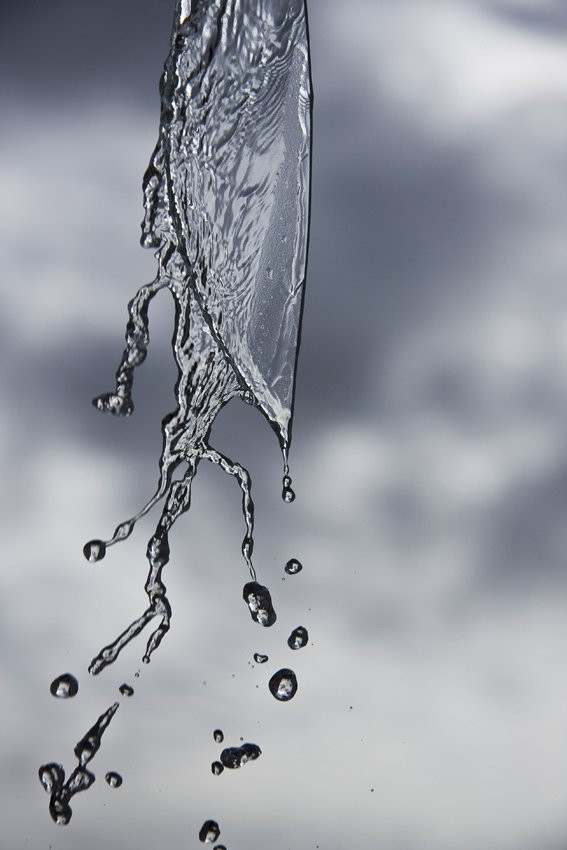 El agua se desliza con la ayuda de la gravedad, escapando del filo.