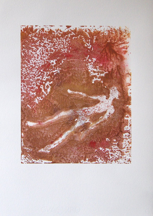 estampación de 24cm por 30cm, acrílico sobre papel