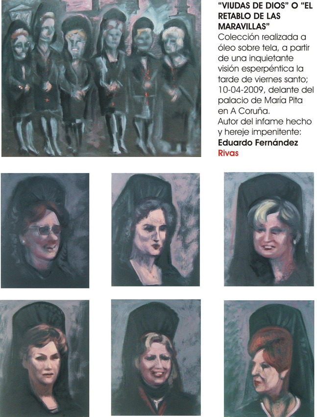 Siete obras a óleo sobre esperpéntica escena en la plaza de María Pta de A Couña el viernes santo de 2009