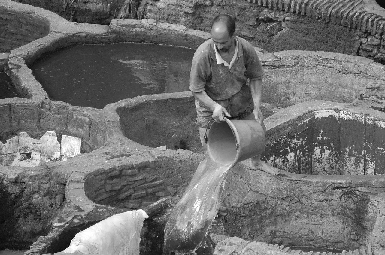 LLenando las tinas para curtir pieles