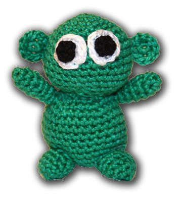 Este divertido extraterrestre de ganchillo quiere conocer el Planeta Tierra. ¿Se lo enseñas? Esta hecho con hilo de perlé nº5. Se puede consultar posibilidad de hacerlo en otro color.