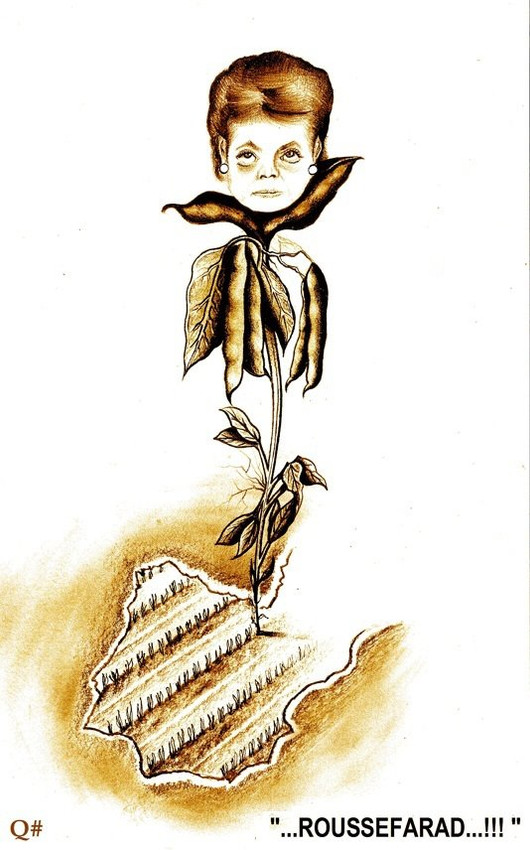 * "...ROUSSEFARAD...!!!" -Obra a lápiz grafito/papel reciclado © Q#-QUIMÉRICAS-El Humor Criptográfico de Quim Paneque- Q#tags: rousseff,rousseau,eau,agua,cultivar,raíces,francia,judía,españa,sefarad,arar,orar,exilio...