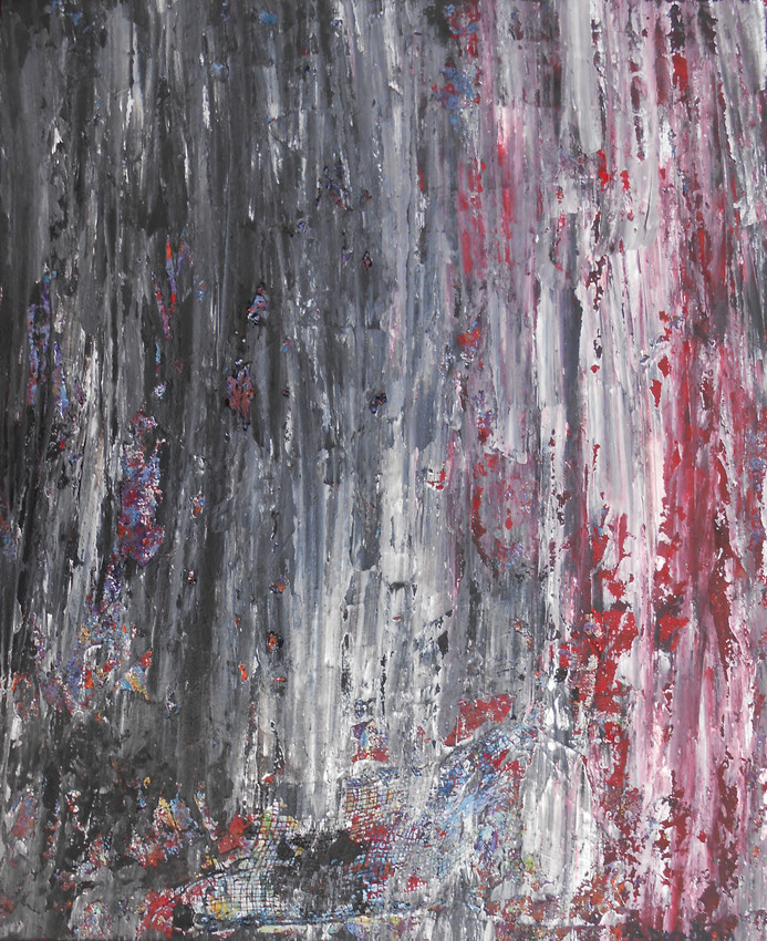 Este cuadro es una obra abstracta de fuerte carga emocional. Las pinceladas verticales, gruesas y superpuestas, transmiten una sensación de peso y movimiento descendente, como si la pintura estuviera “lloviendo” o escurriendo hacia abajo.