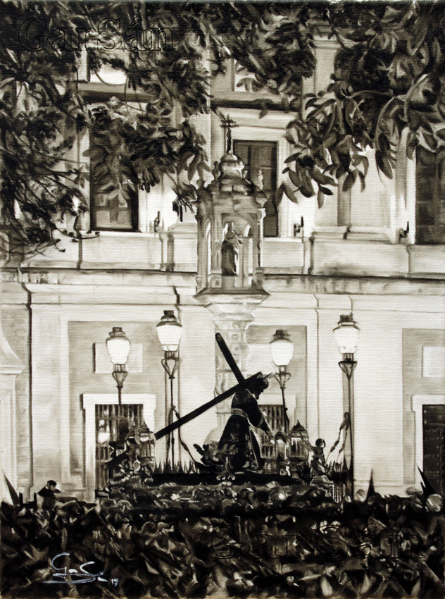 Óleo sobre lienzo de 30x40 usando solo el color negro de la paleta. Enmarcado de gran calidad en plata y negro.