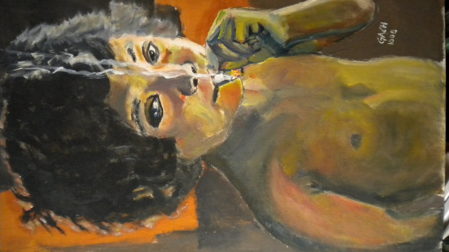 Niño gitano fumando un "Porro". Oleo sobre tela 30 X 40
