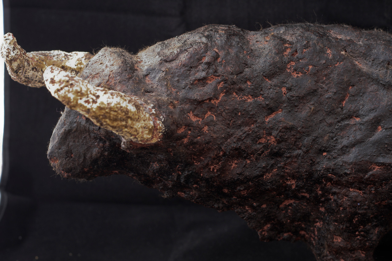 Escultura realizada en el año 2009, pertenece a la colección"Toro". Sobre estructura de metal se esculpe en barro refractario y después de la cocción se aplicó una patina de color