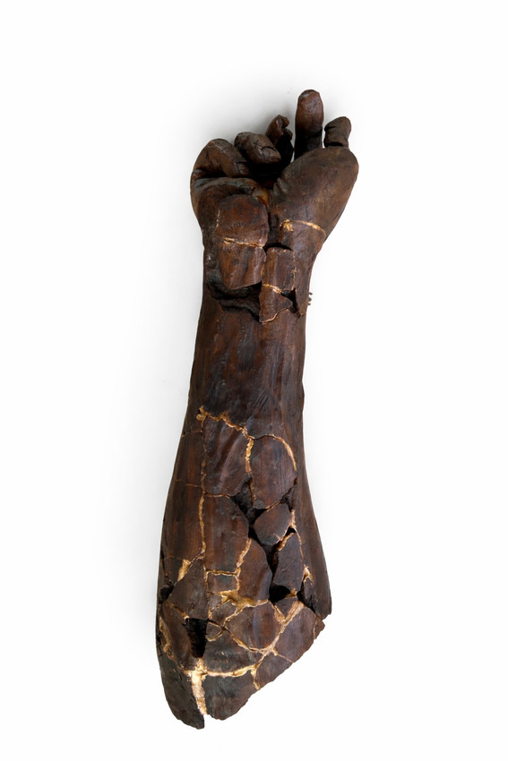 Escultura que explora la tensión entre fuerza y fragilidad a través de un gesto contenido. La forma, que remite a un fragmento corporal, se presenta fisurada y recompuesta, donde la fractura se vuelve parte esencial de su estructura.
