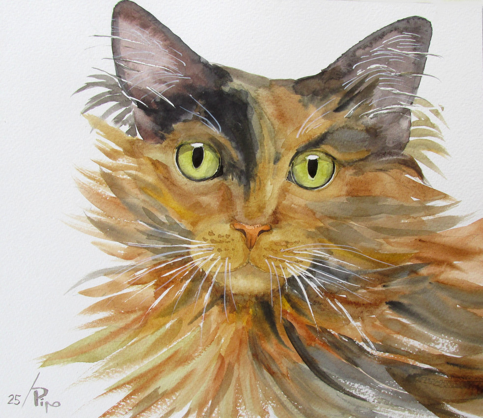 Retrato de una gata con cara asimétrica. Expresión intensa.
