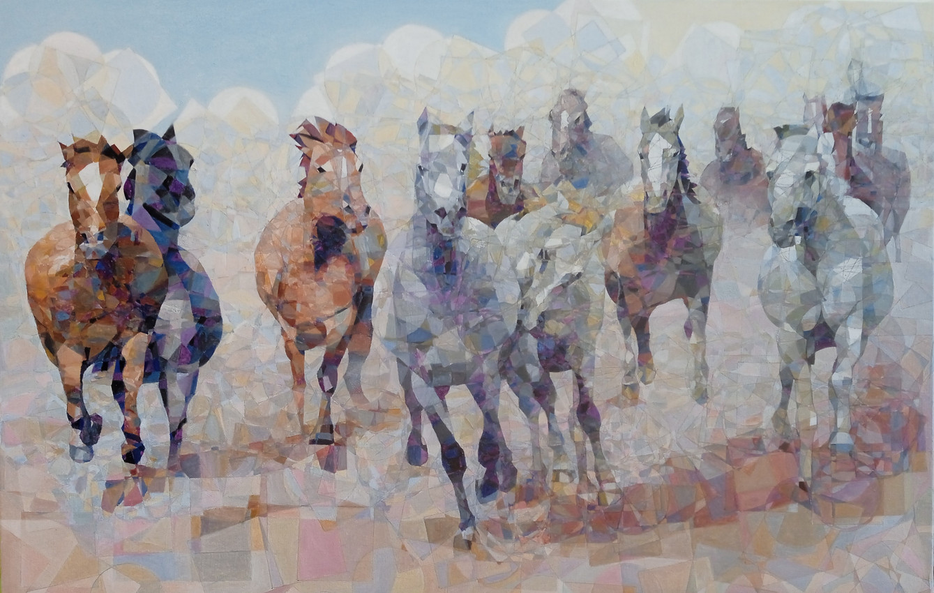Representa a una manada de caballos salvajes, galopando en estampida.