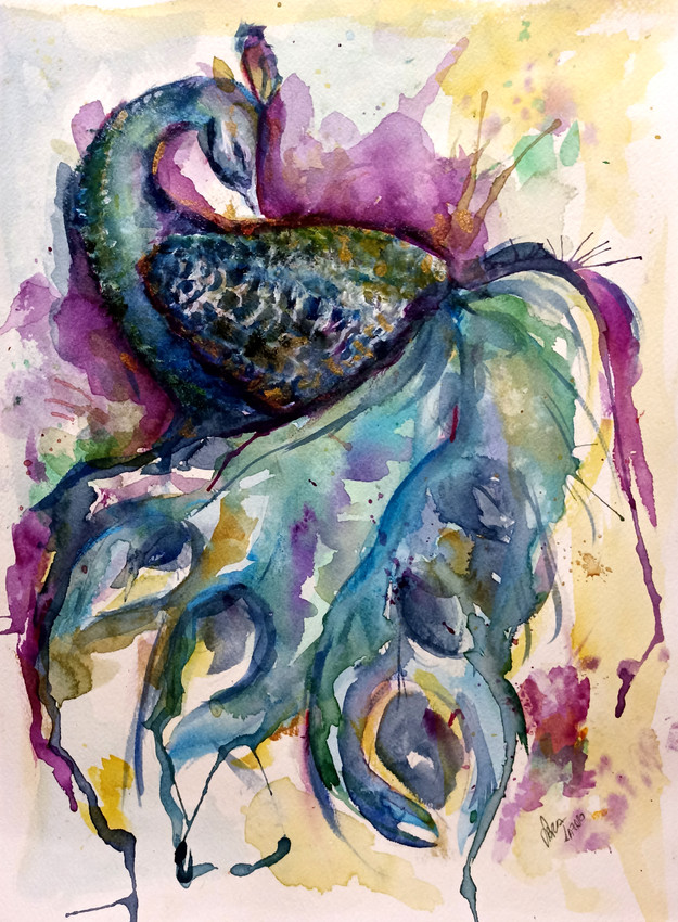 Aquí está mi interpretación de un pavo real en un estilo semi abstracto. Dejé que los colores se deslizaran libres, como plumas al viento, para rendir homenaje a una de las criaturas más fascinantes de la naturaleza. Buscando capturar su elegancia, movimiento y esa belleza etérea que parece imposible atrapar.
