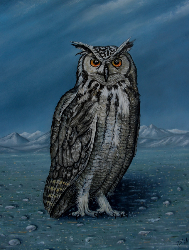 Oilpainting on panel with the theme: Watching, mountains, sky,