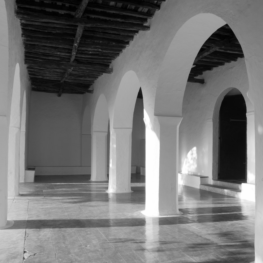Detalle de los porticos de la Iglesia de San Carlos, Ibiza.