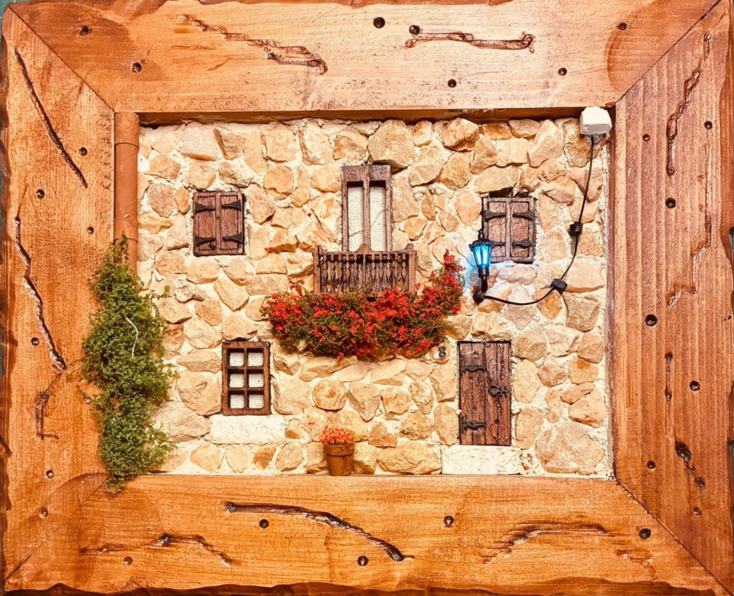 Esta obra es un homenaje a la calidez de los hogares tradicionales. Usé materiales orgánicos y piedra para captar la textura auténtica y la sencillez de lo cotidiano. Quise transmitir esa sensación de bienvenida y vida tranquila que irradian las casas antiguas, con detalles que evocan nostalgia y belleza natural. Imagínate esta pieza llenando tu espacio con un aire de serenidad y raíces profundas.