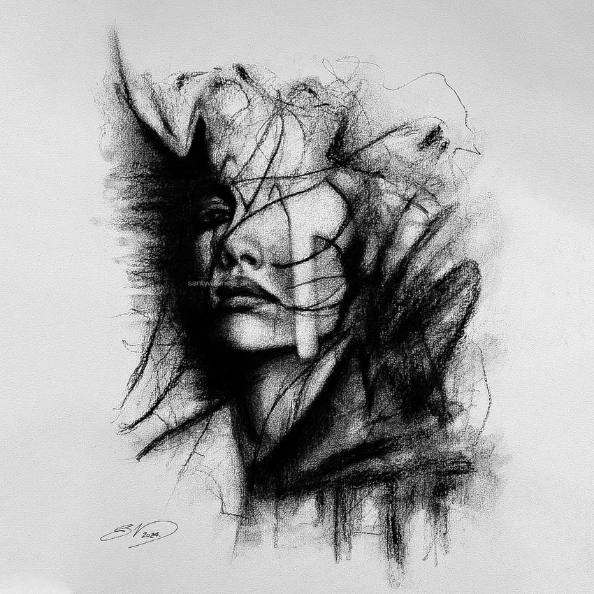"Remember me" Si esta noche es la última noche, te veré en el paraíso. Carbón vegetal sobre papel canson (180g/m2)_2024. 11,7x16,5 pulgadas (29,7x42 cm).
