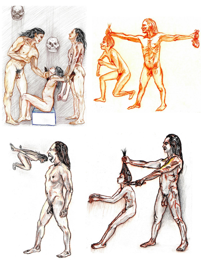 4 dibujos de 22x28cm basados en fuentes arqueológicas.