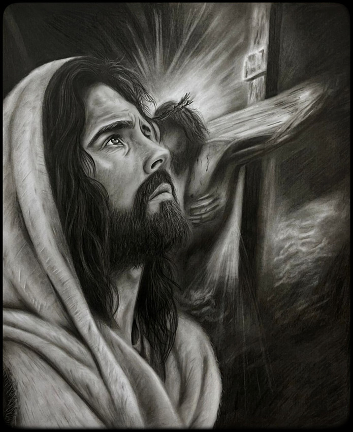 Dibujo realizado de jesucristo en técnica Carbóncillo. Sin marco