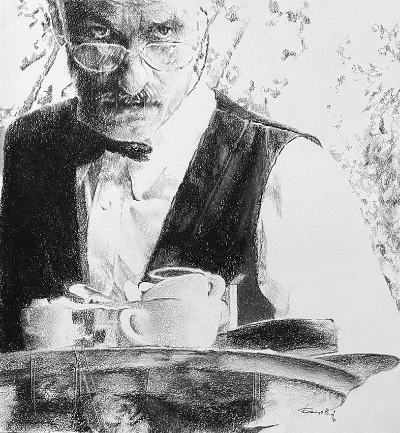 Charcoal on paper. The work is signed by the author.