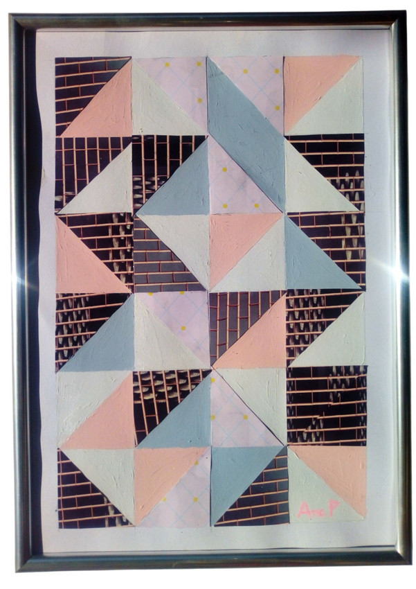 Lámina de acrílico y collage. De estilo geométrico. No esta enmarcado, se vende solo la lámina