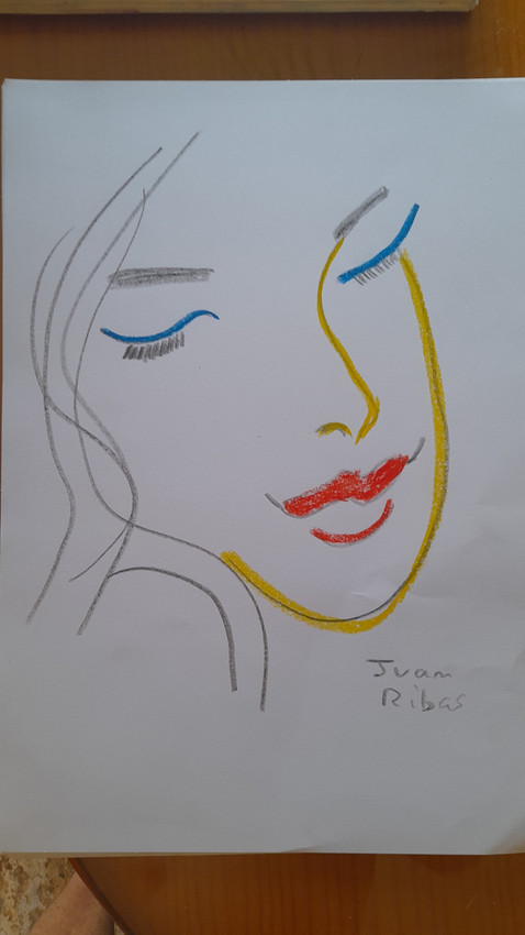 Es una obra de arte del pintor malagueño Juan ribas Fernández..a retratado a una antigua novia de Grecia llamada daniela..fruto de un amor de verano en ibiza