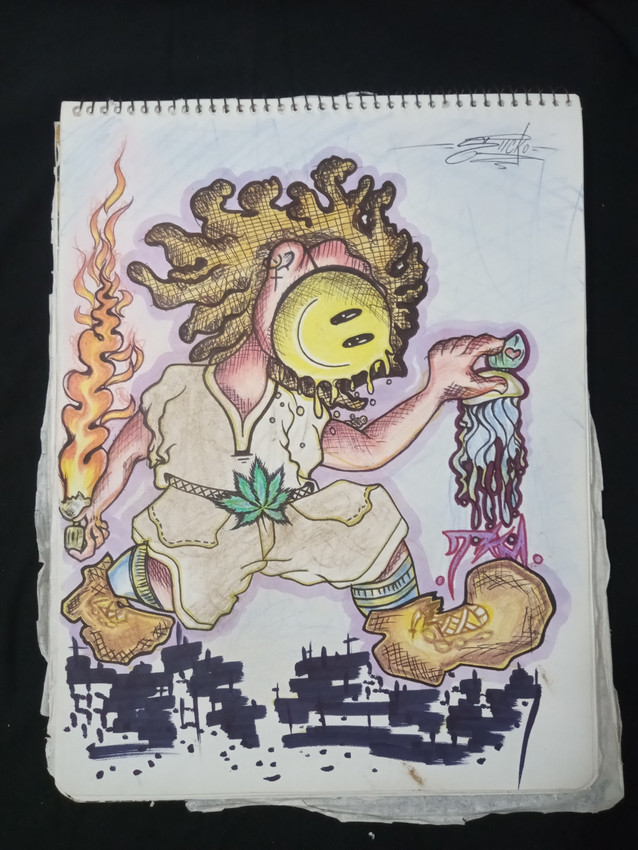 Dibujo hecho con colores plumones y algo de tiempo
