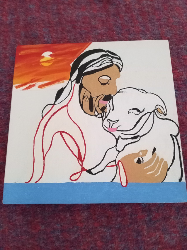 Es una obra Inspirada en el señor cargando una oveja con todo el amor que le tiene