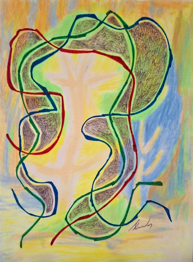 Figura abstracta sobre fondo que representa un bosque.