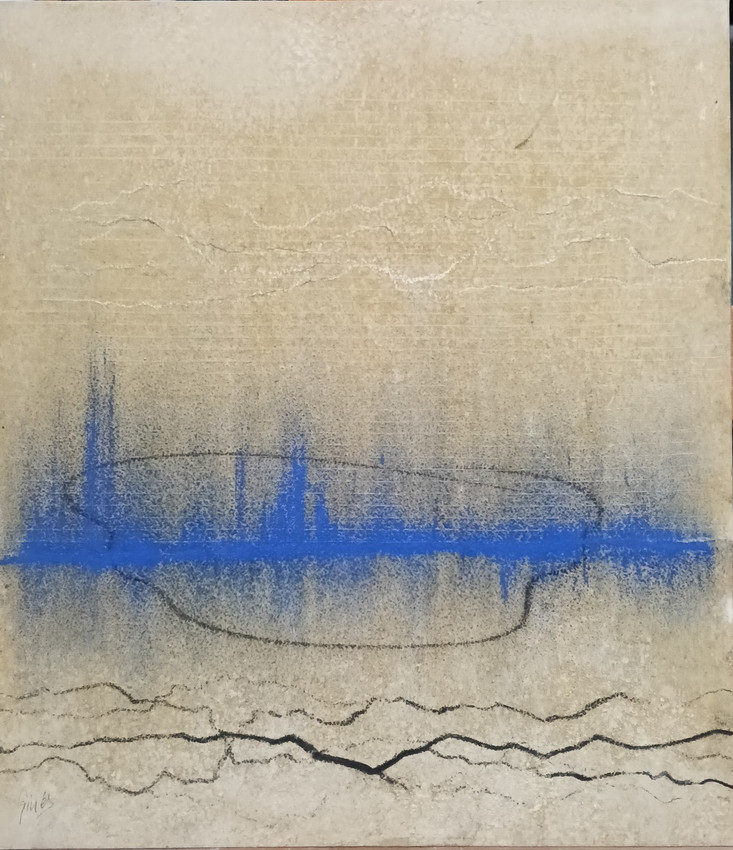 Obra de pequeño formato realizado sobre cartón con técnica mixta a base de resinas, áridos, pastel y grafito que se encuadra dentro de la serie "Alfarería"