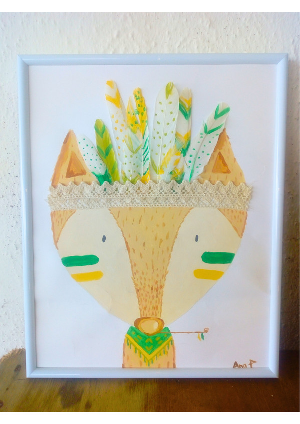 Pintura en acrílico con plumas y tela. No se vende enmarcado