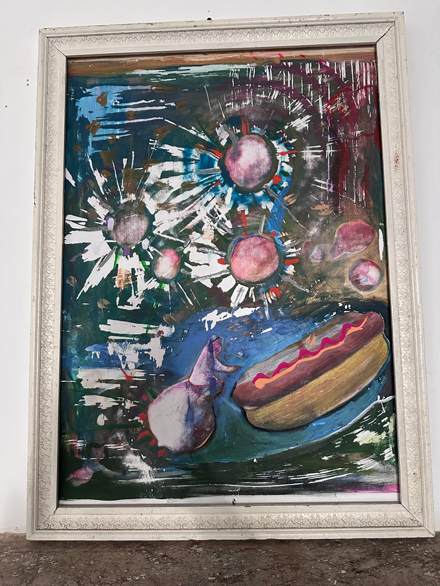 Esta obra juega con la representacion grafica de la libido durante la vejez y su asociacion estrecha con la comida. En este caso sexo casual y Fast food.
