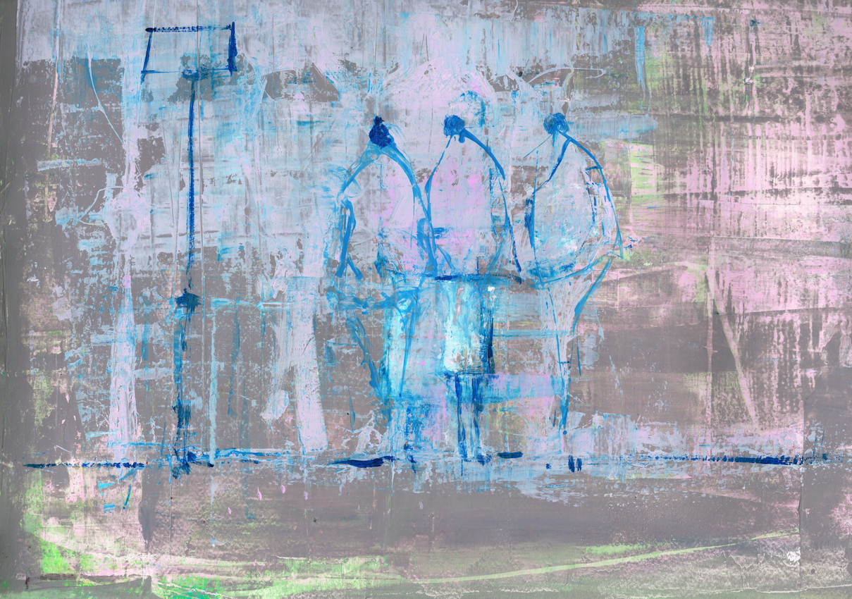 Acrylic on paper. Suggestive, decorative, improvisation and play of colour.