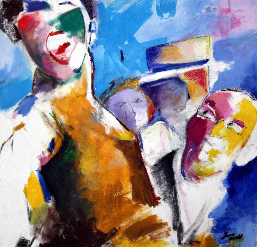 Se trata de un cuadro de Cabaret la película de Cabaret. Representando una escena en particular. És un cuadro interpretado a mí manera cogiendo de base una escena de la película. Con mis colores y mi punto artístico personal.