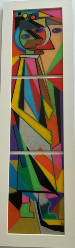Rotulador tinta de agua sobre panel de lienzo, con capa de resina EPOXI transparente. Forman la obra 3 cuadros de 20 cm x15 cm unidos.