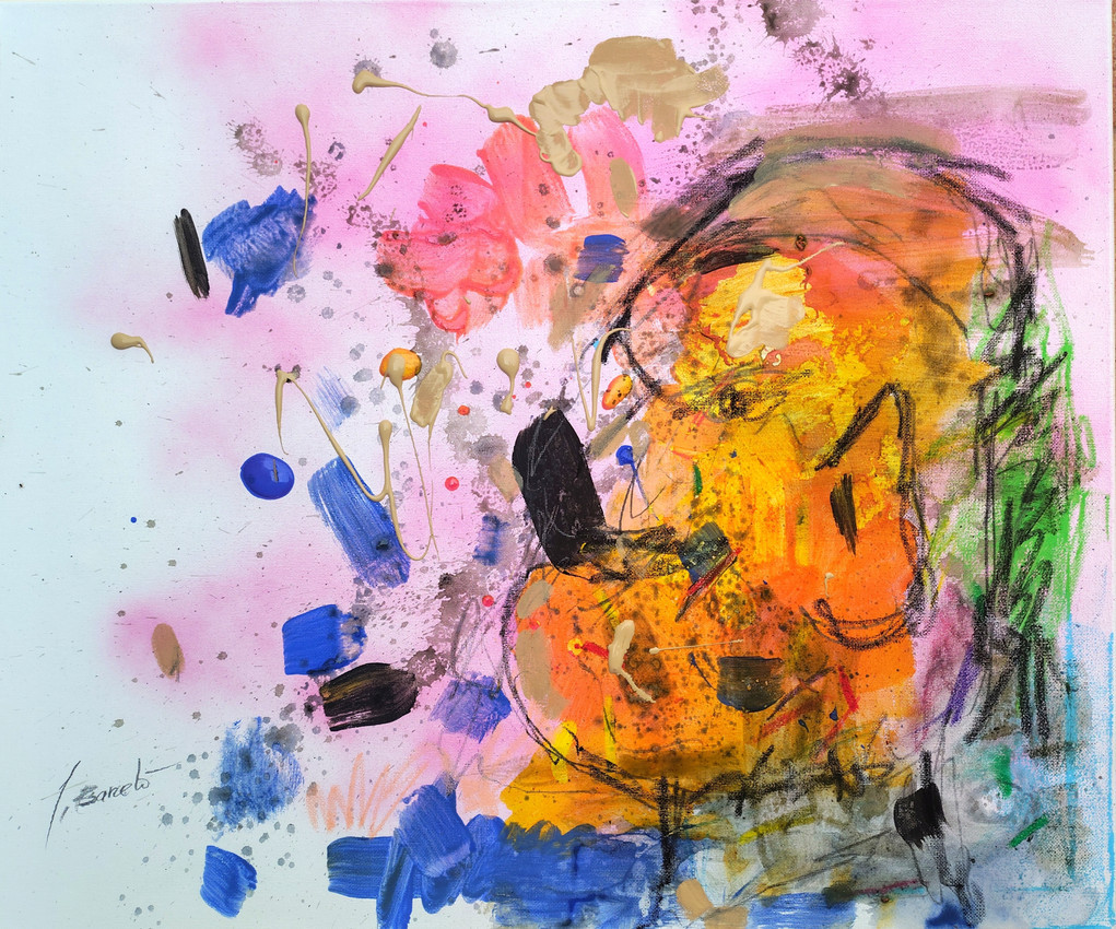 Una explosión de color y gesto que parece nacer sin control, como un pensamiento que aún no ha encontrado forma. Entre salpicaduras, trazos nerviosos y capas de energía cromática, emerge una presencia casi humana que se insinúa sin definirse del todo.