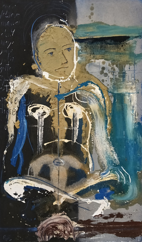 obra realizada sobre tabla mediante técnica mixta, resinas, barnices y pigmentos. Representa una visión de la feminidad