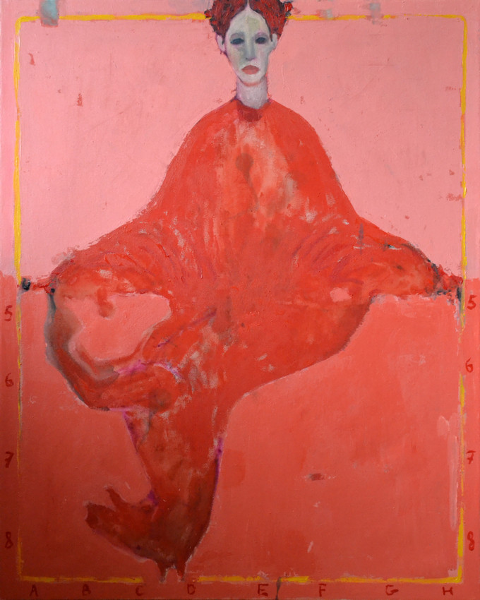 Gambit is an original contemporary figurative painting created in an expressive, semi-abstract style. The work features a distorted human figure rendered in powerful red tones against a warm pink background, creating a strong emotional and psychological presence.
