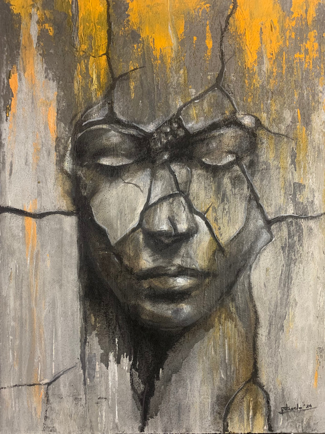 "grietas en el rostro" pretende integrar dentro de un formato abstracto un rostro de mujer aflijido por la degradacion