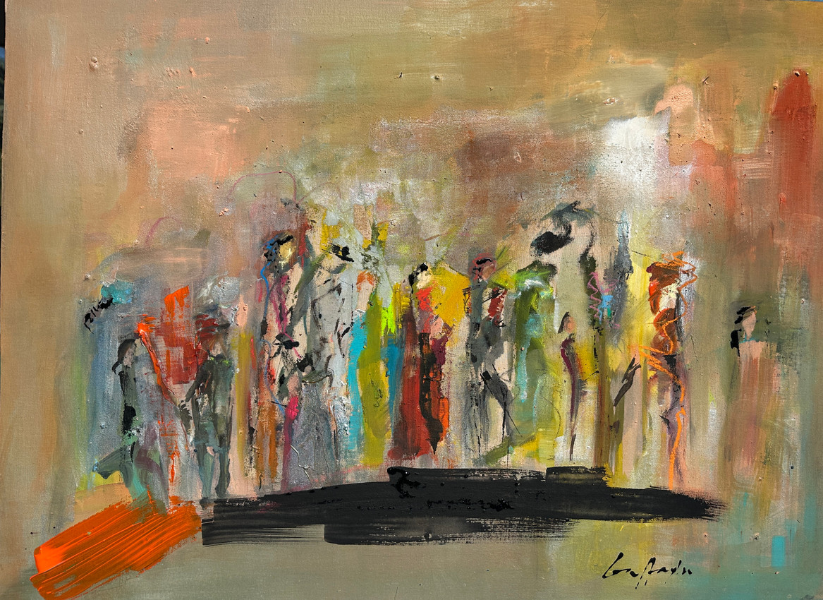 Con pasión y un desbordante juego de colores, he creado esta obra expresionista y semiabstracta usando acrílico y esmalte. Captura una congregación de figuras etéreas y vibrantes, evocando la efervescencia de una reunión social animada. Cada trazo y mancha representan los ecos emocionales y las interacciones humanas, abriendo un diálogo sobre la comunión y el ajetreo de la vida cotidiana. Al colgar esta pintura en tu hogar, invitarás una energía radiante y un toque de introspección.