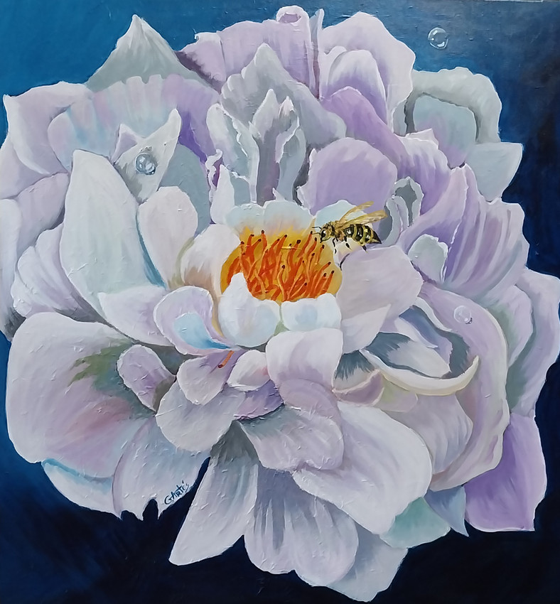Esta obra nos acerca al mundo de las plantas. Se puede observar una abeja, recogiendo el néctar de la flor.