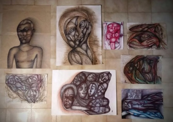 Por lo general explicó un poco y les cuento, que al comienzo de empezar a producir casi siempre aparece alguna idea y luego la plasmacion, boceteando y dejando fluir la mente para luego dar formas concretas a las figuras y siempre ideando alguna técnica que yo solo pueda llegar a realizar y disfrutar, me cuesta en estos tiempos apropiarme de que haya solo pocas formas técnicas, por lo que siempre digo que experimento, ya sea algunas veces desde la intuición u/o todo lo contrario siendo lo mas racional posible.