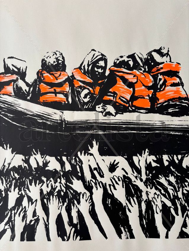 “En el festival de Glastonbury de este 2025 hubo una gran especulación sobre la participación de Banksy, aunque él no confirmó oficialmente ninguna nueva intervención o obra. Un cartel, que se rumoreaba era obra de Banksy, apareció en un puesto de merchandising cerca de Car Henge, frente al escenario Terminal 1, con un precio de £20. La ilustración mostraba un bote con migrantes siendo transportado por un mar de manos, haciendo referencia a una acción de Banksy en 2024 durante la actuación de Idles, donde una balsa inflable con maniquíes de migrantes con chalecos salvavidas naranjas fue “surfeada” sobre el público durante su interpretación de ‘Danny Nedelko’.