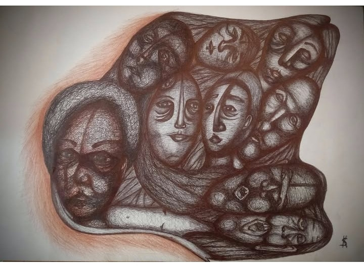 Ciclos es una obra pensada y reflexionado, acerca de los ciclos de la vida y la muerte. Después de un período de grandes desesos carnales en mi familia, en este caso mi madre como al tiempo mi tía, Para poder sostenerme y no clsidicar, el boceto libre comenzó a dar forma a esos rostros quizás jugados con la intuición y la libertad de una representación que si bien se piensa como algo semejante algún realismo algo que. Se acle a la realidad, pero lejos de eso los primeros rasgos no fueron el de mi tía sino una mujer de origen Afro y luego rostros qué se asemejan a dibujos spinetianos, bueno pensé y dije que si tiene q ser así, así lo dejaré, y ciclos es eso, nuestra raíz con la primer mujer, para luego crear rostros masculinos, simbolizando, reencarnación es y vidas pasadas, atravesando cuerpos masculinos y femeninos, líneas del tiempo desiguales, en la parte superior una mujer más bien con rasgos andinos, quizás mapuche, qué es la que abraza y contiene a los otros personajes luego una lectura que visualmente nos lleva a la mitad de los otros dos encarnado y termina en un sentido personal del cual ya el ciclo concluye en esos dos rostros convertidos en el traspaso a ese otro plano que muchos desconocemos.