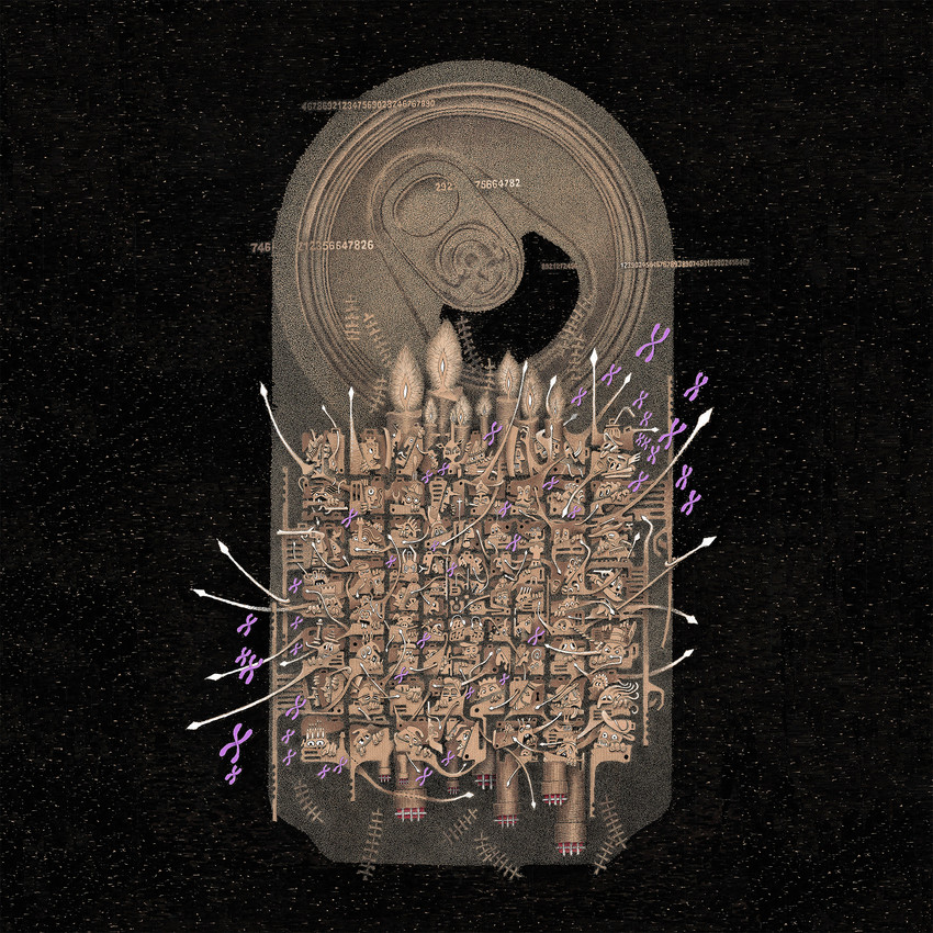 Sin embargo, al estar todos agrupados densamente en una masa y esta masa dentro de una lata de cerveza, es el alcohol que contiene la lata el que les proporciona el estímulo para salir de su zona de confort y proyectarse, para fluir dinámicamente. Tal como como puede suceder en cualquier bar. Olvidarse de sí y dejar de ser. Proyectarse hacia el no ser, para perder la forma y desdibujarse. Iniciar la “descarga” de Canetti. La lata de cerveza como contenedor, también transmite el mensaje que da identidad a la masa social que alberga. La lata de cerveza representa a quienes comparten una cultura común