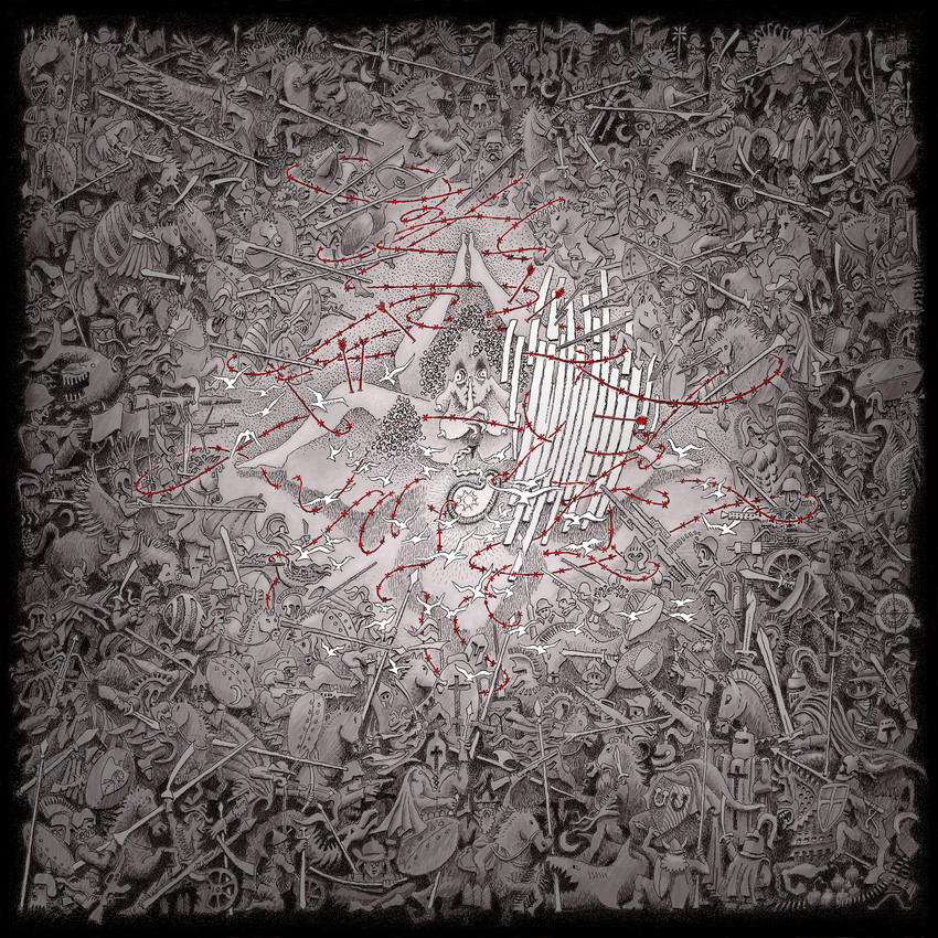 Los primeros bosquejos para este dibujo fueron hechos en 2017. En este caso, Faljano se siente profundamente fascinado con una nueva polaridad de contrarios. Una lucha universal y eterna entre Verdad y Mentiras. De repente, veía estas fricciones en todas partes y. a todos los niveles. Y al mismo tiempo sabía que estaba tratando con complejos conceptos, es decir, al otro lado de la frontera metafísica. De modo que se propone dar forma semiótica a estas ideas, en una alegoría.