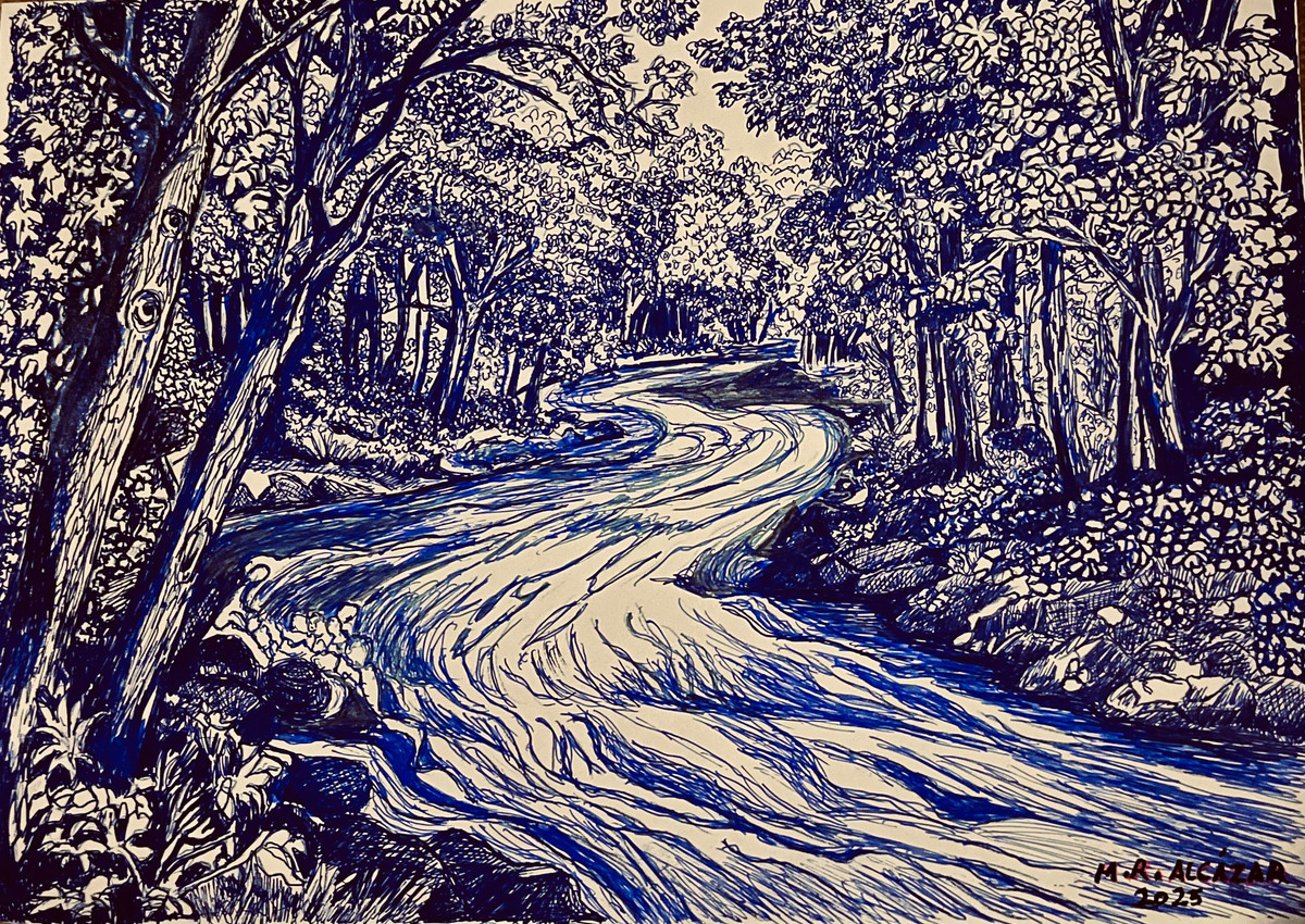 PAISAJE A BOLIGRAFO AZUL IMAGINADO