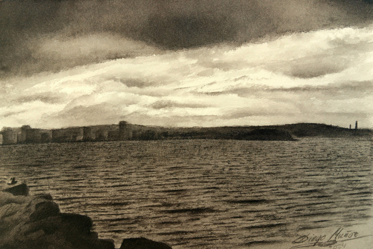 Aguada de tinta china. Con marco de aluminio grafito, paspartú y vidrio protector