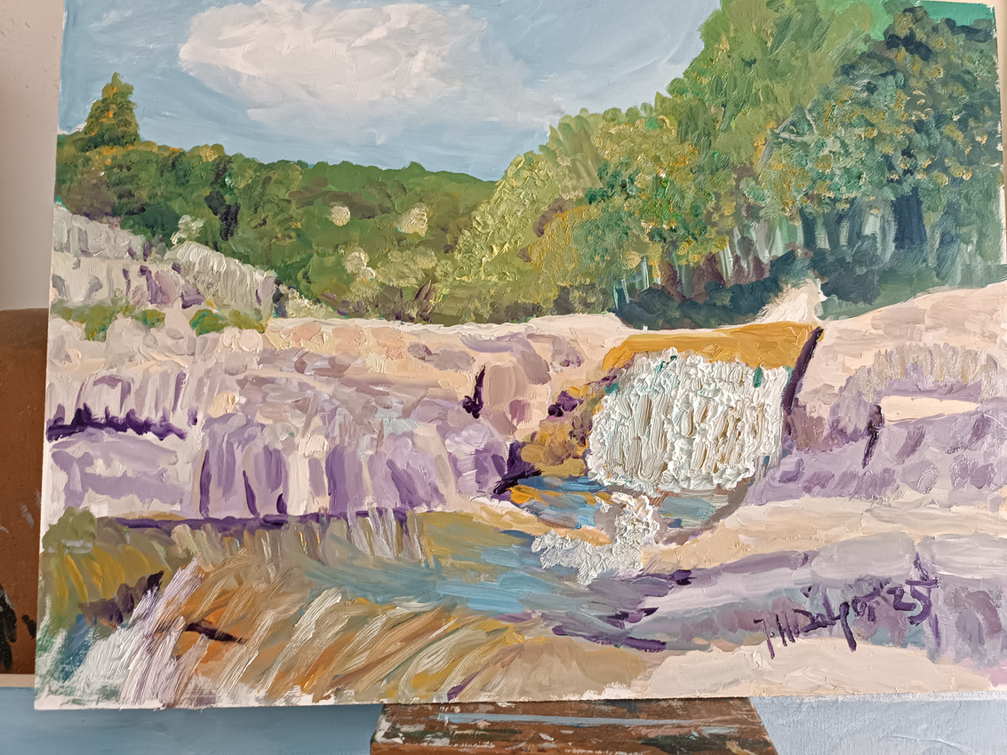 Paisaje de las Pedrizas del rio Manzanares, realizado al óleo utilizando el estilo impresionismo figurativo, donde la pincelada esta desarrollada de forma suelta donde la pintura resuelve la composición , la perspectiva aérea creando un visión uniforme y determinada del lugar captado, haciéndolo completamente reconocible.