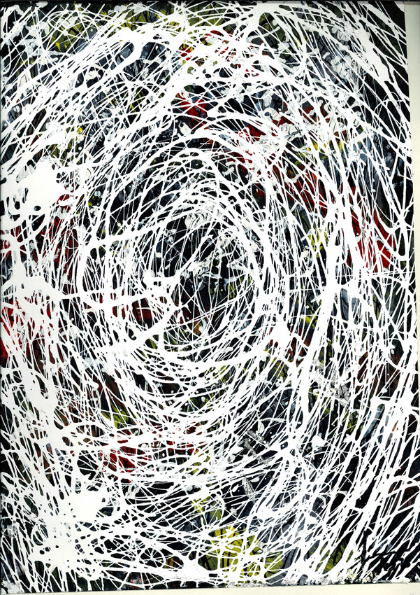 La presente obra en el continuo desde la abstracción hasta una emergente figuración se sitúa en un término medio donde puede percibirse una suerte de agujero de gusano de espiral de luz blanca que se proyecta en un vacío vibrante y vivo.