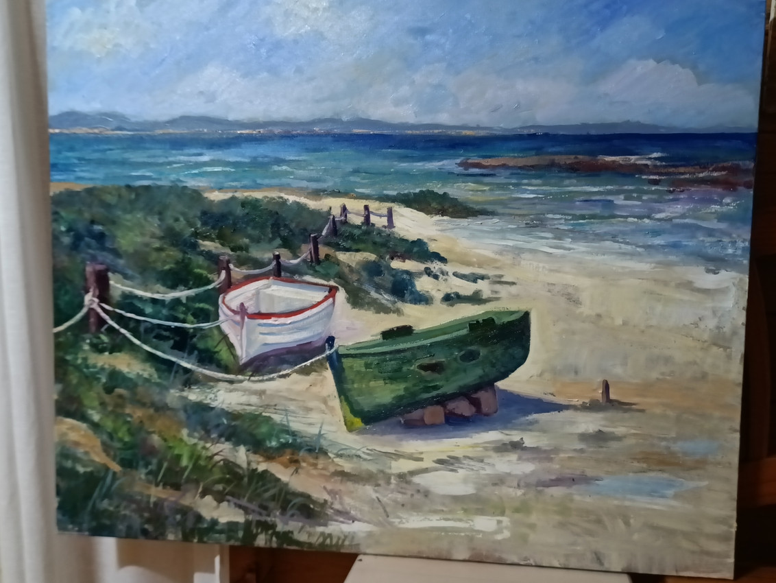 Oleo sobre lienzo 100x81, playa de formentera ibiza